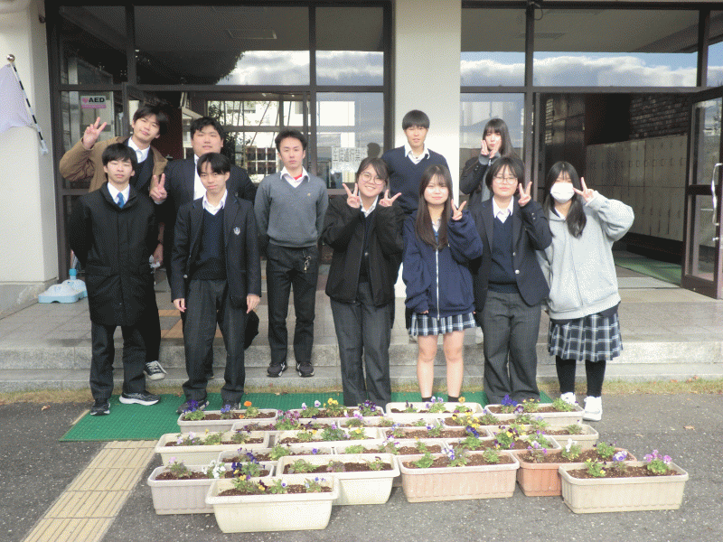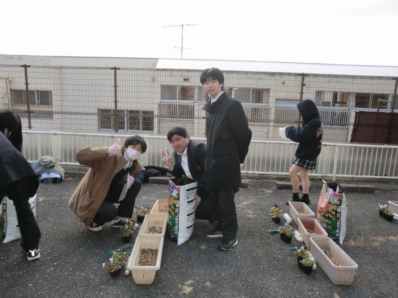 12/12(金)3年保健委員の生徒たちが、環境美化活動の一環として、パンジーの植え付けをしました。
