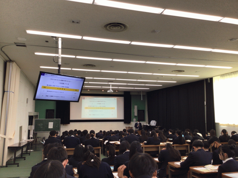 視聴覚教室において、進路業者をお招きし、大学入試に向けて、どうする?