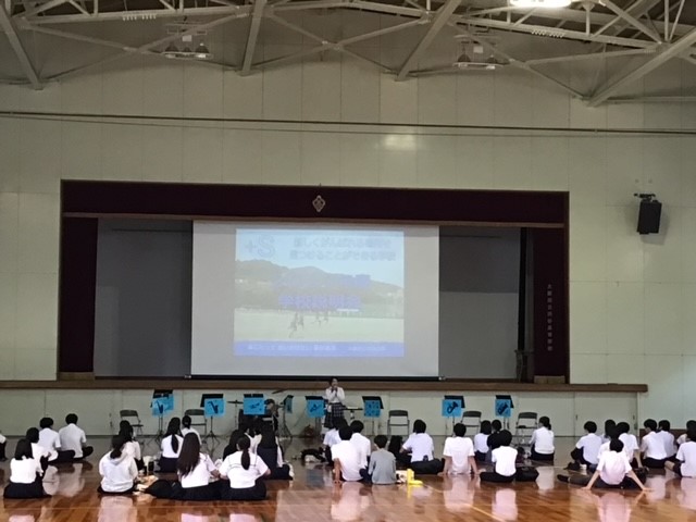 厳しい暑さの中にもかかわらず、約100名の中学生・保護者の方が参加してくださいました。