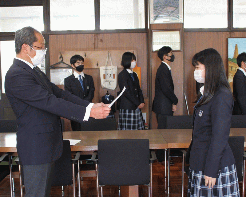 後期生徒会役員の認証式を行い、一人ひとりに認証状をお渡ししました。皆さんから、渋谷高校への思いと決意を感じました。半年間、よろしくお願します。期待しています。