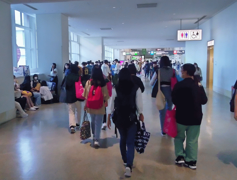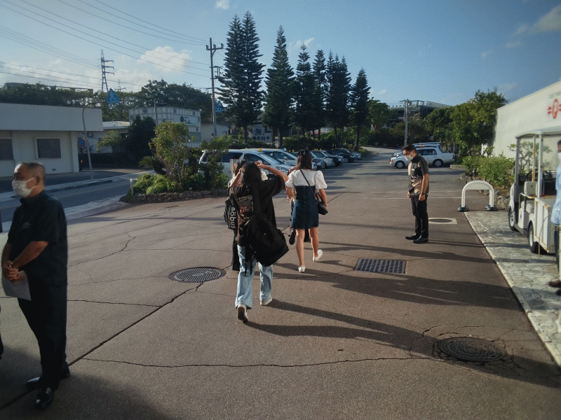 大きなお土産袋を持って、三々五々、タクシー研修から那覇空港に帰ってきました。