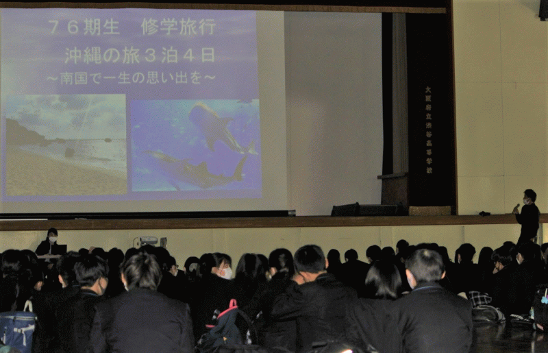 2年生は、10月に予定している修学旅行について、学年集会を行いました。 学年主任からは、2年生の過ごし方の話がありました。
