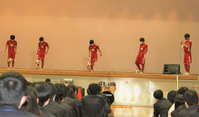 歓迎会では、映像有あり、パフォーマンスありの、クラブごとに趣向をこらした紹介で、1先生も楽しく時間を過ごすことができ、高校生活での部活動にイメージを抱くことができました。
