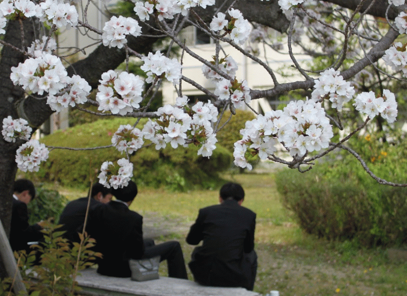 天気の良かった今日は、中庭でお弁当を広げる生徒がとても多かったです。特に桜を見ながらの時間は特別ですかね。