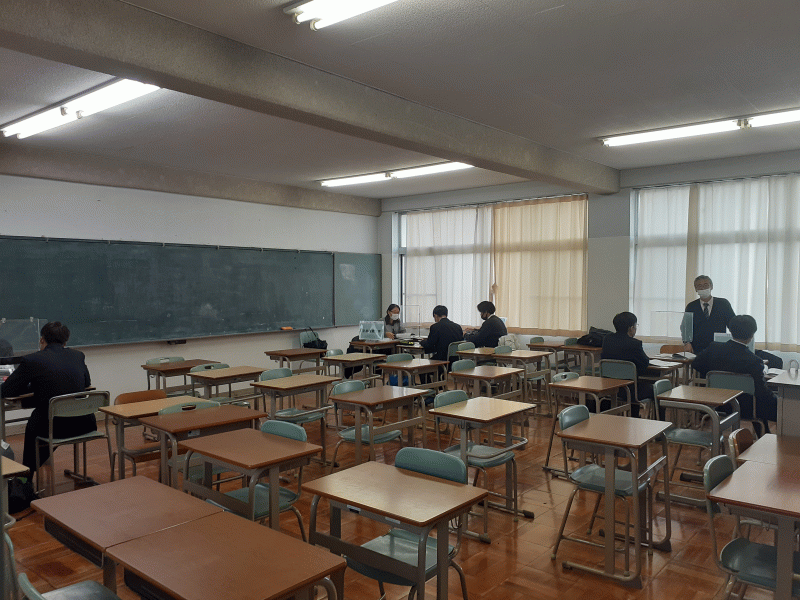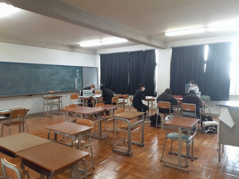 各自が進学する大学の過去問を実際に解答することで、一般選抜で大学進学した生徒との学力の差をなくし、大学の授業についていけるようにすることをめざして企画しました。本日、13時20分から視聴覚教室で実施すると、対象の3年生は、みんな真剣に問題を解答していきました。