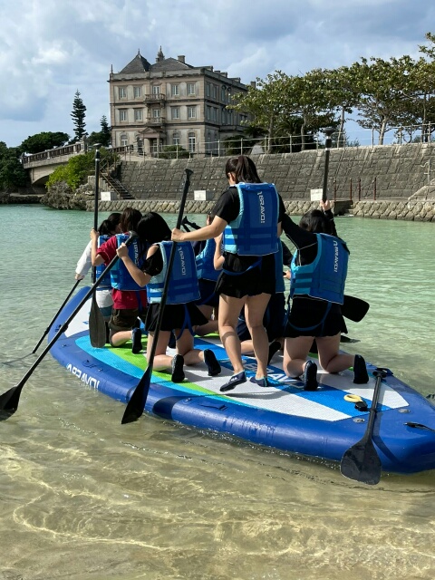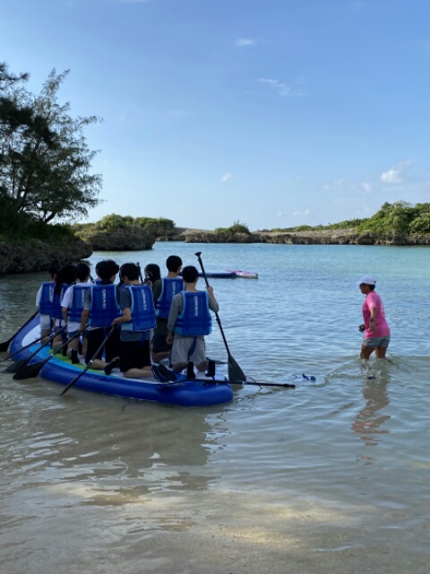 sup体験の様子です。無事みんな乗れました。