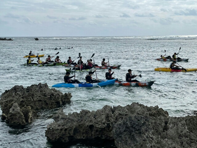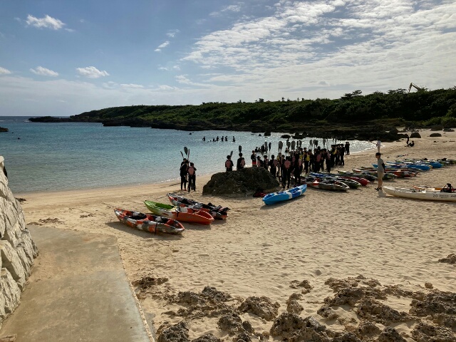 シュノーケルとカヤックの様子です。天気が良く気持ち良さそうでした