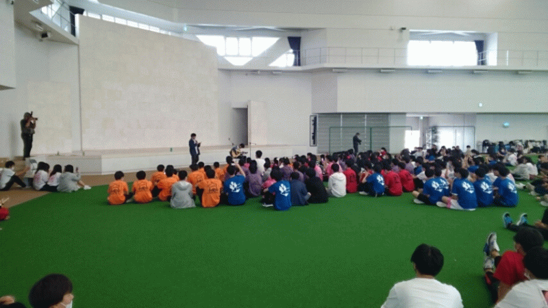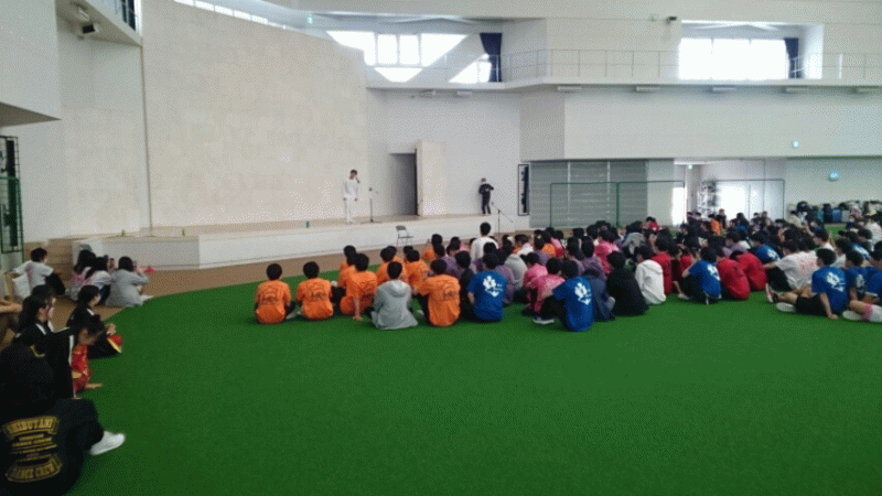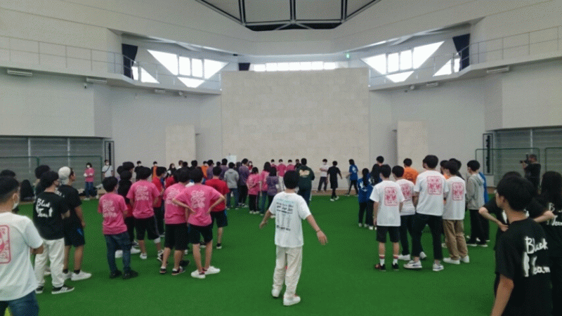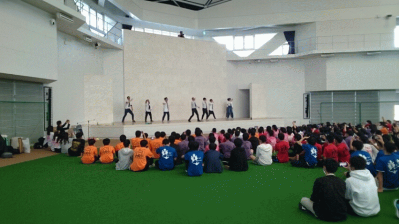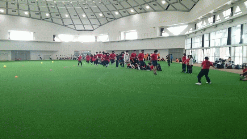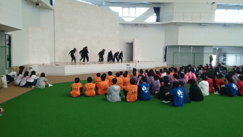 JTAドームにて、全体レクリエーションです。大縄とひに続いてドッチボールで対戦です。