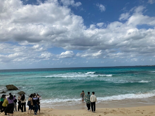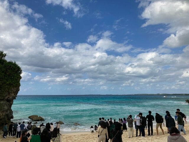 砂山ビーチでは、海の色に感動!