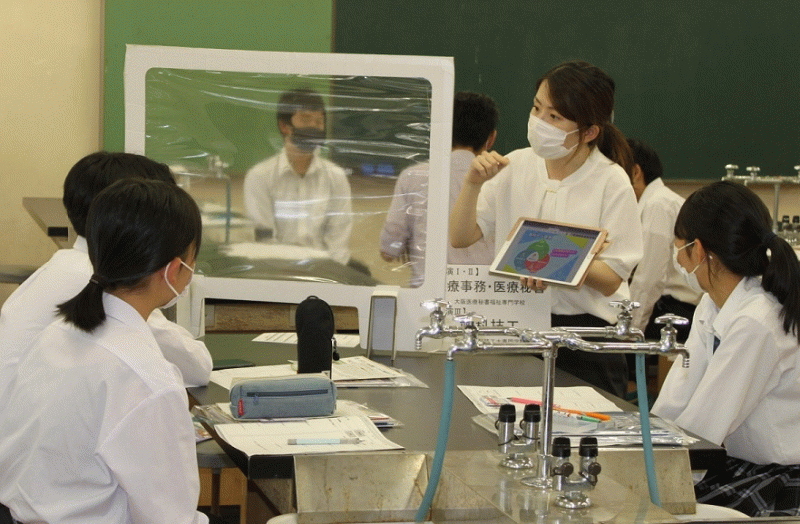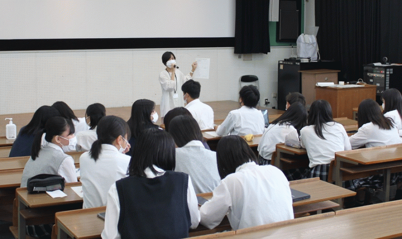 生徒は、興味関心のある分野や職業に関する講和を選択し、各々3回、少人数でブースに分かれて講師の先生のお話うかがいました。夏休みにオープンキャンパスに行った生徒もいるのですが、多くの生徒にとっては、高校生になって初めてのことで、緊張しつつも多くの情報をいただくことができ、とても刺激になりました。