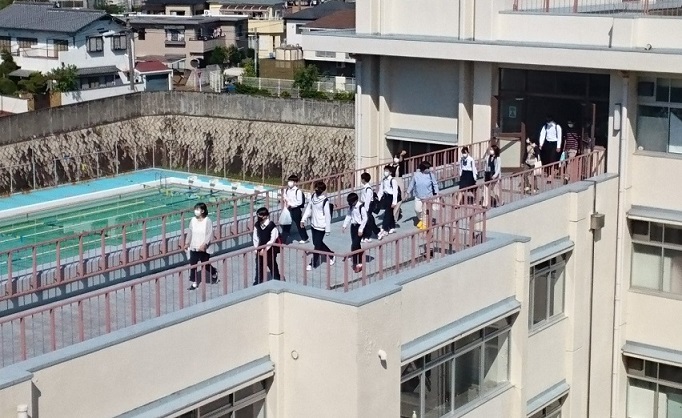 素晴らしい秋晴れのもと、64組105名の中学生にご参加いただきました。密集をさせるため、説明会場も2か所にしての運営となりました。生徒会執行部や本校教員による学校概要の説明に続いて、学校施設の見学を行いました。プログラムの最後には、本校自慢の天体望遠鏡で太陽黒点とプロミネンスを観察するオプションもつけました。これが思いのほか好評でした。またクラブ活動も多く実施していたことから、じっくり見学していただくこともできました。