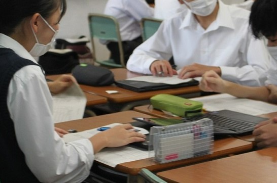 2年生は、グループに分かれて、修学旅行の訪問地「宮古島」をテーマに、調べ学習をスタートしました。