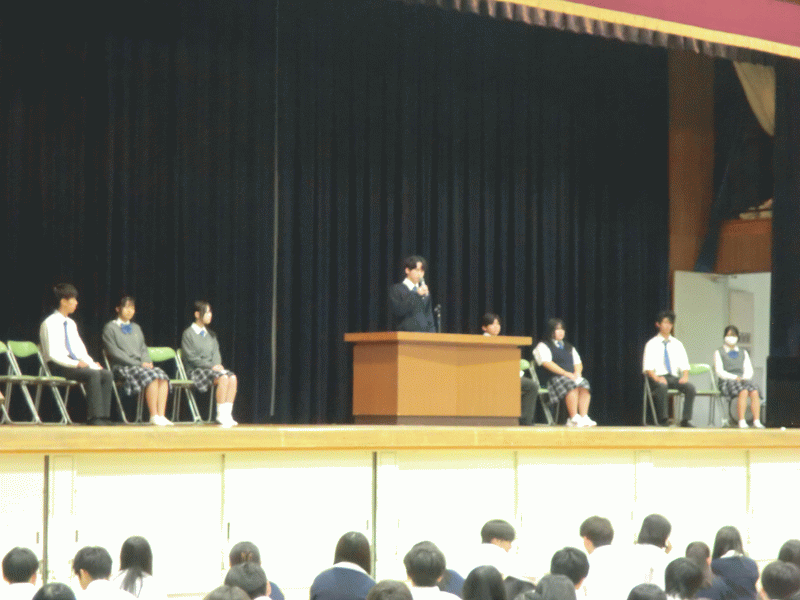 校長挨拶、生徒代表挨拶、そして今日はアコースティック音楽部による2曲の楽曲(菅田将暉さんのさよならエレジー、Hump Backさんの拝啓、少年よ)披露があり、会場はとても盛り上がりました!!