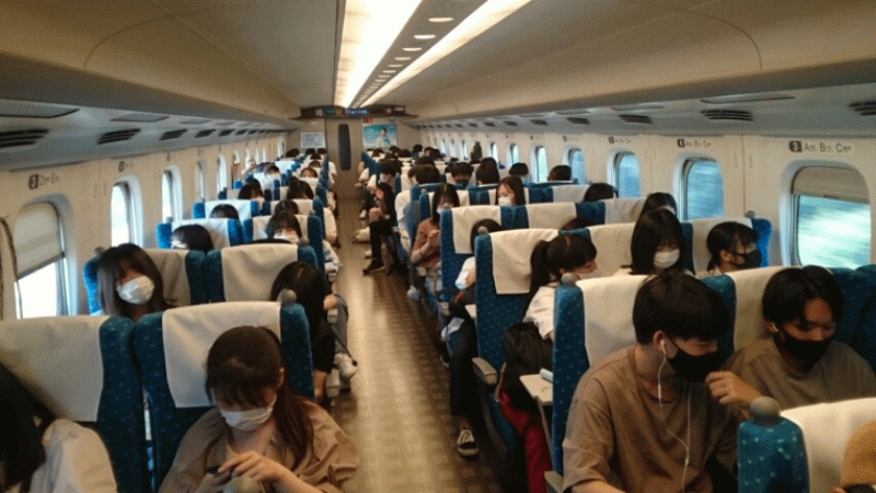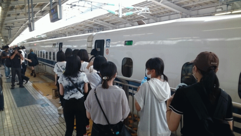新大阪駅の団体待合室に集合した後、新幹線に乗り込みました。