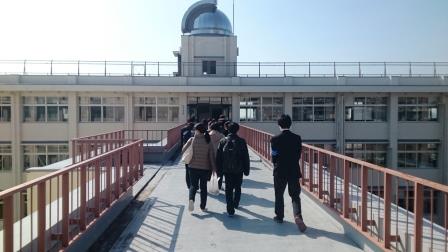 本校自慢の天文ドームです。晴天のなか輝いています。