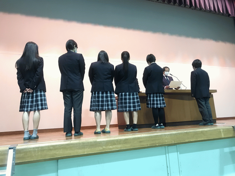 3年の課題研究チーム・天麩羅が、第23回高校生新聞社賞を受賞しました。 自主性と行動力をもって挑戦し、大きく成長した生徒に対して、その栄誉を称え「高校生新聞社賞」が贈られました。 卒業式予行の時に、校長先生からみんなの前で表彰して頂きました。