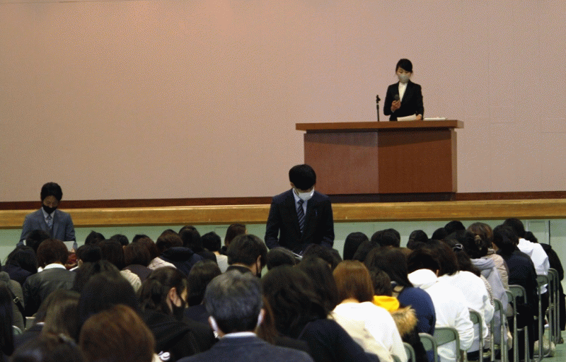 新型コロナウイルス感染症拡大防止のため、保護者の参列は各家庭おひとりに制限せざるを得ませんでした。まことに申し訳ありませんでした。また、来賓の招待も、在校生の参列も見合わせました。