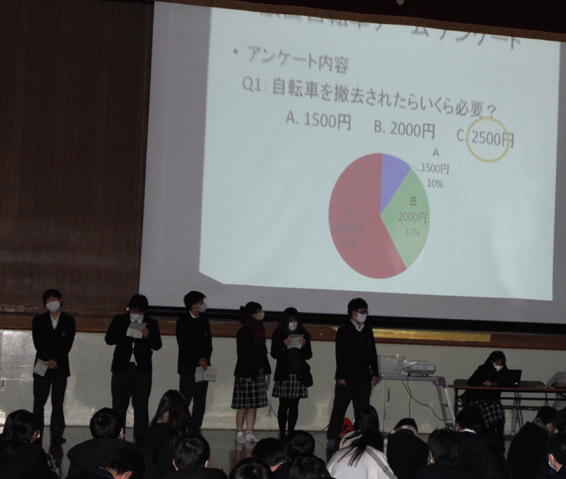 3年生が10月から取り組んできたSプロの、学年全体での発表会を開催しました。それぞれの部門から選ばれた部門代表チームが、発表に臨みました。