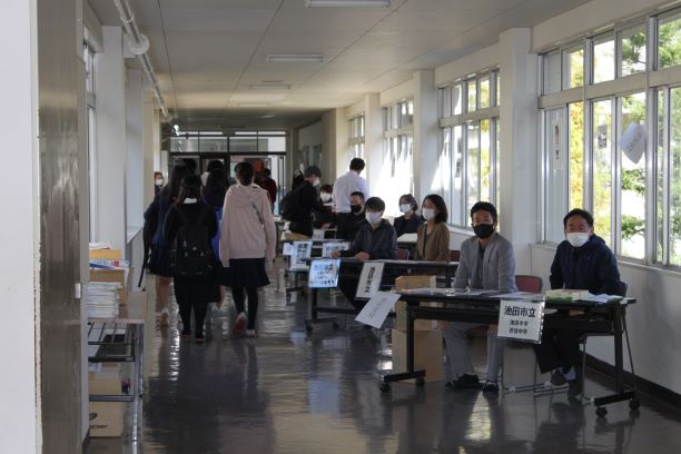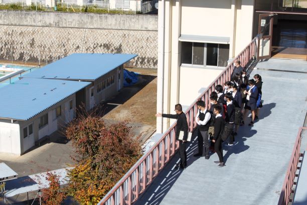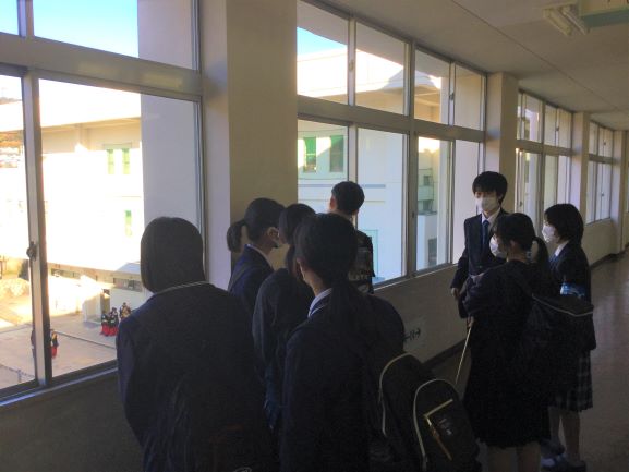 こちらも、校舎案内の様子です。お天気が良かったので、4Fからは校内だけでなく、秋の景色も見渡せました。