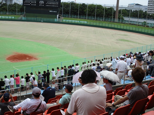 7月12日南港中央野球場で、大阪大会1回戦、渋高VS大阪青陵の試合が行われ、本格的な夏を思わせる強い日差しのなか、熱戦が繰り広げられました。