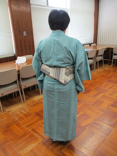 今日は、毎年恒例になりました浴衣着付け教室がありました。講師の皆さんに丁寧に教えていただきながら、浴衣の着付けに挑戦です。