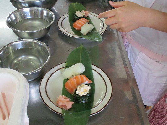 生徒の皆さんの握りずしも,、お手本通りの仕上がりです。