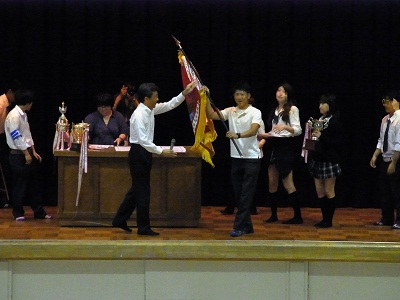 素晴らしい演舞のあと、優勝旗・表彰状・トロフィーの贈呈式です。昼休みという短い時間でしたが、節度を保ちながらも体育祭を味わい尽くす渋高生のまとまりの良さは大したものです。