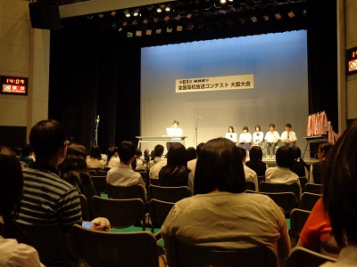 NHK杯全国高校放送コンテスト大阪大会が昨日、新大阪駅近くの大阪市立青少年センターで開催されました。アナウンス部門では予選を勝ち抜いた25人が日ごろの練習の成果を披露し、うち6人が全国大会に進むことができます。渋高からは4人の放送部員が大阪大会決勝に出場し、うち2人が見事全国大会への切符を手にしました。今年で7年連続となりました。こうして継続して出場できるのは立派なことです。