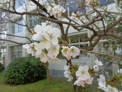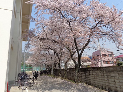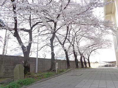 渋高のある一帯は、昔は梅の木がたくさんあったそうです。校歌にも「白梅の匂ゆかしく乱れ咲く」とあります。今は桜の名所にもなっています。バス通りを渡った東側の石澄川沿いにきれいな桜並木があります。呉羽の里一帯も桜並木の美しいところです。入学式のころまで咲き続けてくれればいいのですが。