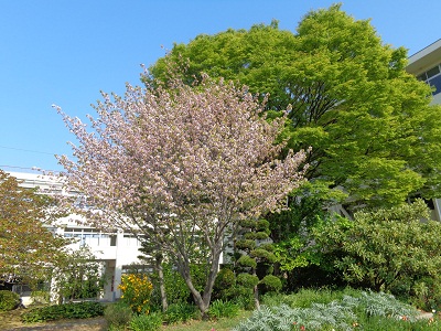 さて校内は、4月の初めから桜が順々に咲いて楽しませてくれていましたが、八重桜がほぼ散ってしましました。代わって、欅の若葉が瑞々しく照り輝いてきました。中庭の「竹林」では筍が地面を割って顔を出しています。すさまじい生命力です。季節が確実に進んでいます。