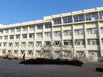 今朝、校舎の2か所にあった工事用の足場が取り払われました。空調は普通教室には以前から入っていますが、特別教室はLAN教室と音楽室を除いてありませんでした。このたび、府教育委員会により書道、美術、食物の3教室に空調が入ることになり、その工事が進んでいました。作業員さんたちが静かに、きびきびとした動作で作業を進めていかれるのが印象的でした。一人ひとりが自分の役割をよく心得ている、そんな動きでした。