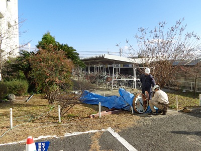 長らく玄関脇で登校してくる渋高生を見守ってくれていた柱時計の根元の腐食が進んで、とうとう撤去のやむなくに至りました。時計は34期生の皆さんから卒業記念に寄贈されたものです。本来でしたらご了解いただくべきですが、強風で倒れる恐れもあったことから急ぎました。関係の皆様には、なにとぞご了解くださいますようお願いします。