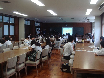 また、中学生の皆さんに渋高を見てもらう学校見学会を昨日から始めています。午前と午後の1回ずつ。渋高での勉強や部活動、進路状況などの説明のあと、学校のいろいろな施設(教室、図書館、天文ドーム)などを見てもらっています。それに深い青空を背景に五月山の濃い緑が浮かび上がる美しい景色にも歓声があがっています。来週の月・火曜日ににも実施しますので関心のある方はおいでください。