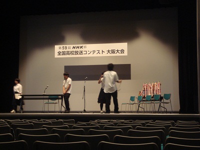 まず、17日にNHK杯全国高校放送コンテストの大阪大会決勝があり、本校放送部の3人が全国大会への出場を決めました。アナウンスの部の大阪代表6人のうちの半数です。これで5年連続になります。2年生も1人、代表に選ばれています。こうして続いていくのはとても素晴らしいことです。東京での決戦は7月23日からです。左の写真は、決勝前の緊張のひと時です。