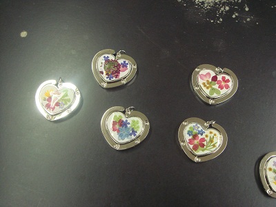 加えて、今日のお昼には企画委員会の主催でバッグハンガーを作る講習会が開かれていました。押し花にジェルを被せて熱っするのだそうです。作業をしながら、楽しげな会話が進んでいました。
