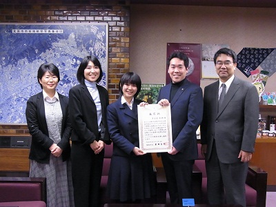 週末の金曜日は、渋高放送部3年生の津波古さんがNHK杯全国高校放送コンテストアナウンス部門に大阪代表として出場し入選したことに対して、倉田箕面市長様より箕面市長表彰をいただきました。表彰式のあと、市長から津波古さんにコンテストの様子や普段の練習、今後の夢などについて質問があり、落ち着いてきちんと答えていました。さすがアナウンス部門。前にも述べましたが、今回の入選は先輩から引き続いてのものです。さて、来年はどうか、頑張れよ2年生。