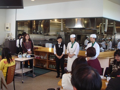 日曜日はPTAの社会見学で三重県多気町にある相可高校の「まごの店」に行きました。テレビドラマになった「高校生レストラン」です。前日が雨降りだったので心配しましたが、当日はすっきりとした晴天で、早朝にバスに乗って伊勢に向かいました。レストランではたくさんの高校生が厨房で調理し、食堂でお客様にサービスしていました。みんな真剣な表情でてきぱきと働いていて、これが同じ高校生かと、参加した保護者も教員も驚きでした。食事をおいしくいただいたあと、3人の生徒さんがインタビューに応じてくれました。相可高校に入った動機、つらかったこと、将来の夢などを話してくれました。「料理は味が大事か、見た目が大事か」という意地悪な質問には3人とも声を合わせて「味」と答えていました。見た目は工夫しだいで何とかなるのだそうです。