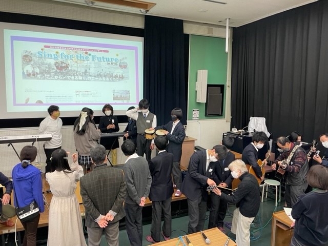秦野地区の皆さんにご来校いただき、本校のアコースティック音楽部との交流会を行いました。
