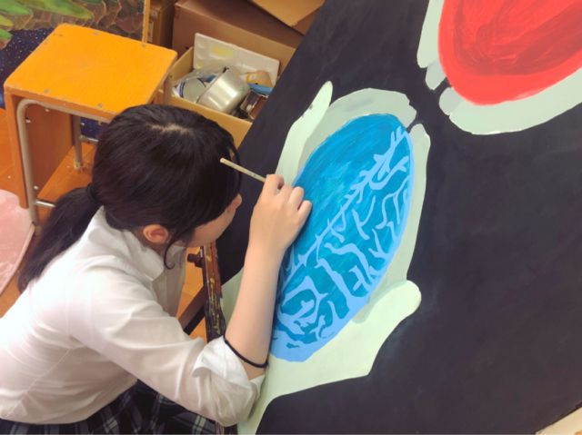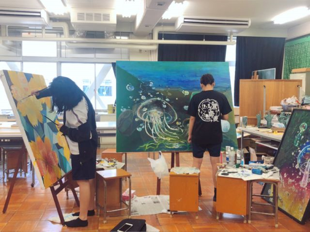 こちらの写真は高校展と文化祭に向けて作品を作っているときの作業風景です!