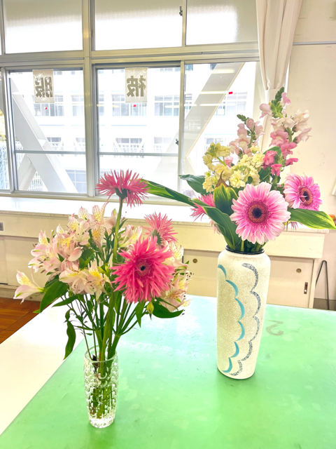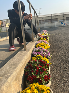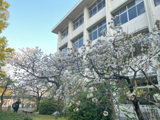 体験入部に新入生2名が来てくれました。校内の山桜とパンジーが満開で綺麗でした。