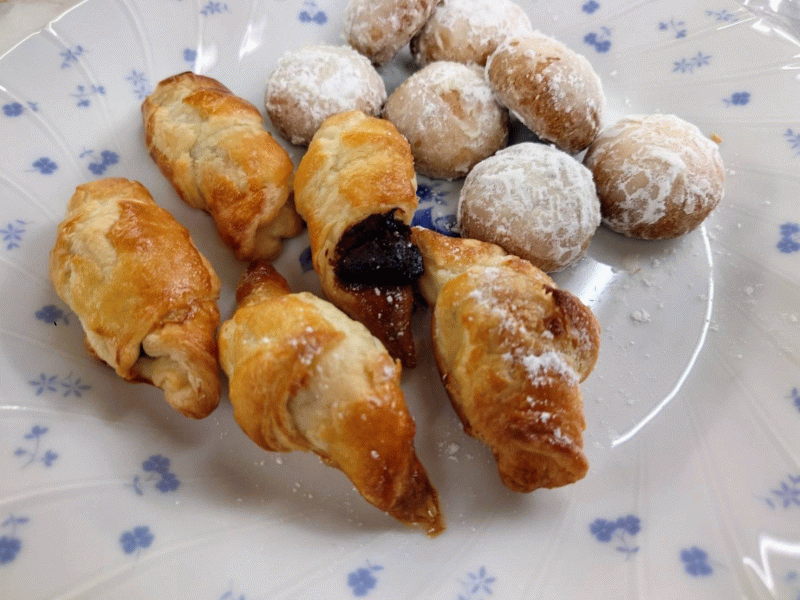 クロワッサンは生地がサクサクしていて小さいので食べやすく、スノーボールクッキーは粉砂糖が雪のようになっていて見た目もよく甘さありで美味しく出来ました。