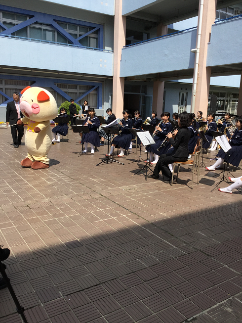 桜はもう散ってしまい、風が強く吹く中での演奏は、なかなか大変ですが、スリリングに楽しく、4曲を演奏しました。 次は新入生と一緒に演奏したいです。ぜひ一緒に演奏しましょう!