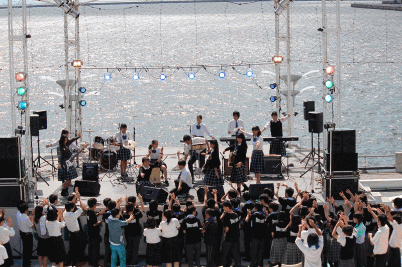 また、9月18日には、大阪南港ATCで行われた「近畿地区高校軽音楽系クラブ東日本大震災チャリティーコンサート・Sing for the Future第28回」にも参加し、演奏に加えて、募金活動にも尽力してきました。この活動で3年生は引退となりましたが、これからも聴いていただける方々に何かを伝えられる演奏を目指して、部員顧問一同、気持ちも新たに練習を頑張っていきたいと思います。どうぞよろしくお願いします。