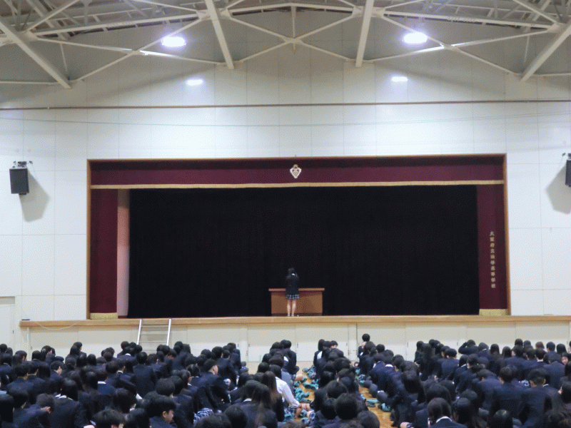 校長からは、渋谷高校の校訓「自主・友愛・誠実」を心に留めて、自分の殻を破り一歩ふみだすこと、思いやりの心をもって他者とつながる力を持ち続けること、という話がありました。